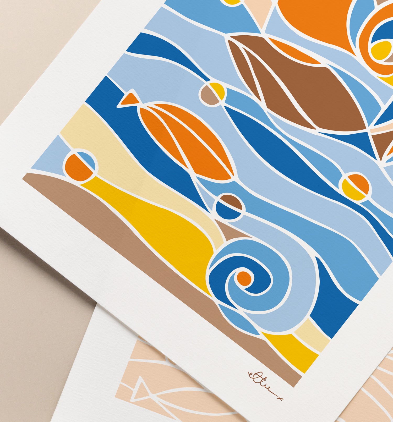 The art prints are printed on a beautiful, slightly textured museum-grade cotton thick paper (310gsm) using the highest quality pigment-based inks — ensuring your prints remain vibrant and lasting for years to come.