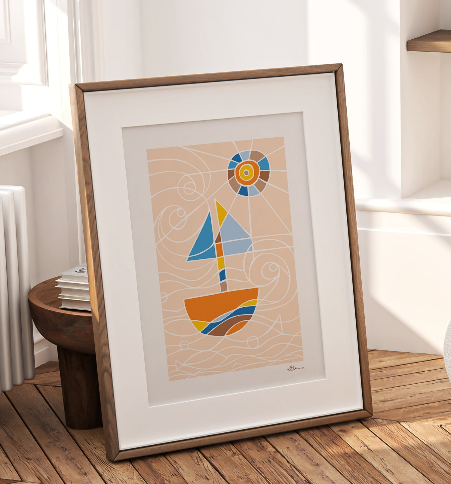 This art print captures the spirit of summer by the sea, featuring fish, the sea under the sun. It brings a sense of calm and harmony to any space, perfect for adding a refreshing, peaceful touch to your home.